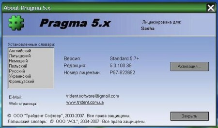 Pragma 5.x - это многоязычная программа машинного перевода для перевода текстовых документов с одного языка на другой. Программа поддерживает семь языков: Английский, Русский, Украинский, Немецкий, Латышский, Польский, Французский. Pragma 5.x выполняет перевод непосредственно в окне активного приложения или в отдельном окне быстрого перевода. С помощью программы можно переводить текстовую информацию, представленную в виде документов MS Word, Интернет страниц, почтовых сообщений, справок, а также содержимое различных текстовых окон. За счет автоматизации многих функций Pragma 5.x очень проста в использовании.