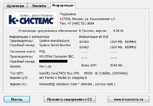 K-Systems 8.07.1 - это Новая версия диска с драйверами, главная особеноcть которого заключается в автоопределении устройств на компьютере с выводом списка драйверов, которые требуются для данного компьютера.В Windows запускается программа, которая тестирует железо и предлагает установить необходимые драйвера. Комплект содержит драйвера и для XP и для Vista как для х86, так и для х64. Иногда возникает проблема: мы не знаем, где достать драйвер для ноутбука/материнской платы и т.д... Что делать? Начинаешь ставить EVEREST, лезть на разные сайты производителей и т.д... А что делать, если железо из серии "Noname" (неизвестный "серый" производитель)? Здесь и понадобится нам "уникальный" диск K-Systems!